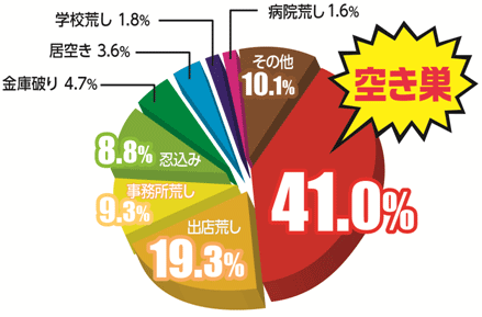 5件に1件は店舗、10件に1件は事務所が被害にあわれています。
