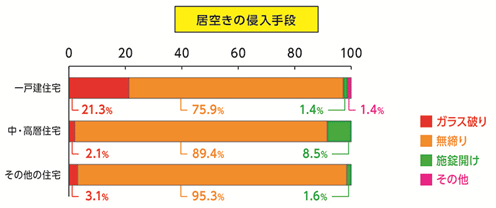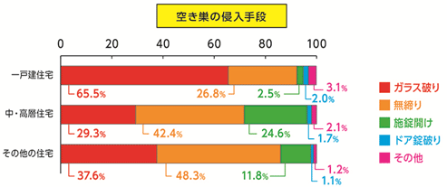 もっとも被害の多い手口「空き巣」の侵入手段の割合