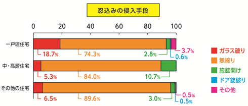 鍵をかけずに被害にあってしまう「無締まり」やガラス破りによる被害が多くなっています。