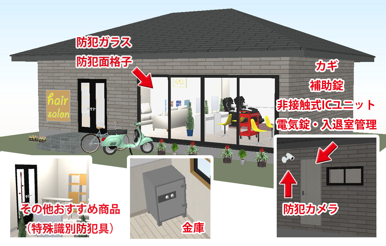 扉や窓などの防犯対策に着眼した泥棒が嫌がる店舗作りを提案します。