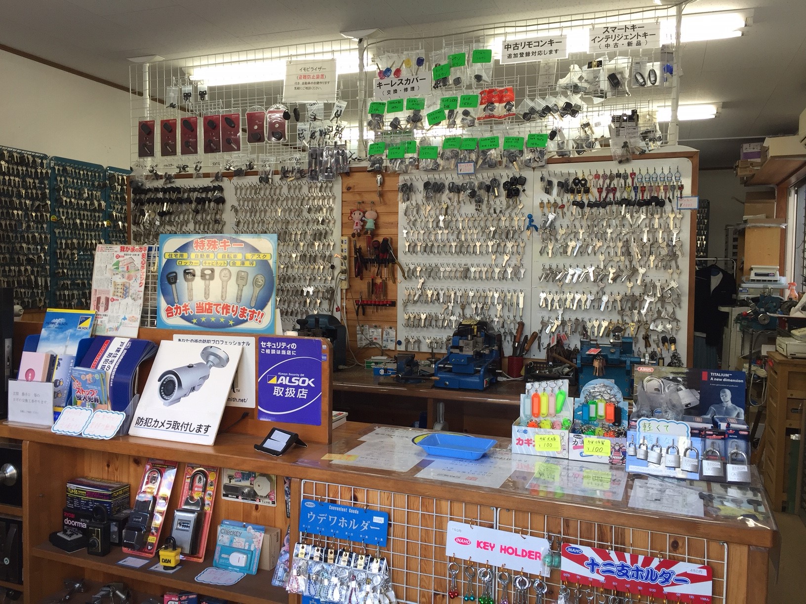 純正キー・合鍵制作受付を行っております。防犯のご相談も受け付けております。店舗に従業員が常駐しておりますので、お気軽にご来店下さい。